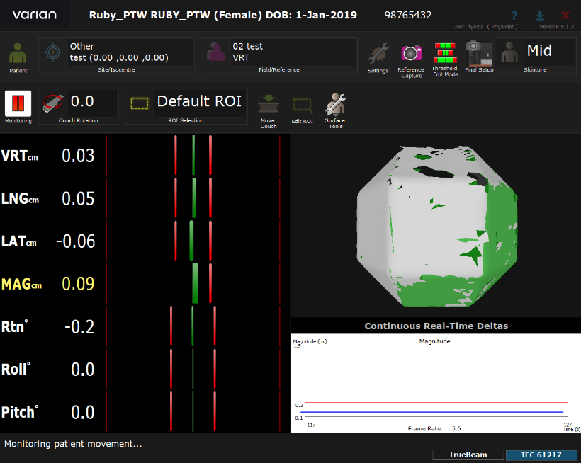 • Turn SGRT system on (for example Vision RT) and record the analyzed shift